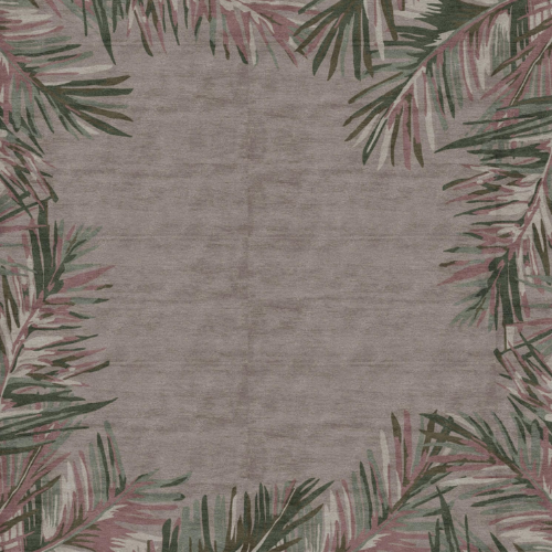 Bring nature-inspired elegance into your home with this Tropical Leaf Border Rug. Featuring a soft muted base with beautifully detailed green and pink palm leaves along the edges, this rug adds a refreshing and modern tropical vibe to your space. Its subtle yet artistic design makes it perfect for both contemporary and casual interiors, while the soft texture ensures comfort underfoot.